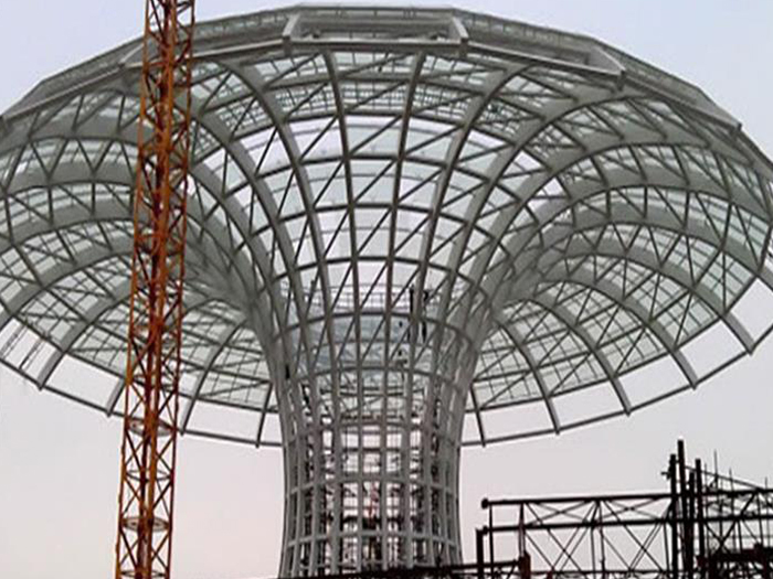二、球形网架结构因其结构新颖,受力合理,自重轻、用钢量低等优点。如大型体育场馆球形贺州螺栓球网架、公共场馆球形网架、电厂贺州螺栓球网架、水泥工业球形网架、仓储物流球形网架、贺州干煤棚工业球形网架、贺州收费站贺州加油站球形网架、展览中心、影剧院、商场、航站楼、候车厅、工厂贺州车间、仓库、电视塔等球形螺栓球节点网架。国内球形网架结构主要分为:贺州焊接球节点网架及螺栓球节点网架两种。螺栓球节点网架其构件工厂内加工量较大,现场安装便捷,适用于现场工期紧,贺州施工条件、用电量受制约,网架形状复杂、贺州杆件定位困难的异形结构。螺栓球节点球形网架系统基本由贺州杆件、螺栓球、支撑支座等组成。按照节点形式可分为交叉贺州桁架体系、四角锥体系、三角锥体系等。支撑方式多为固定支座支撑。对于大面积、大跨度及有特殊受力或伸缩要求的网架结构可采用橡胶支座、滑移支座、球铰支座等支撑形式,以满足结构自身的受力稳定、均衡,便于内力释放等设计要求。